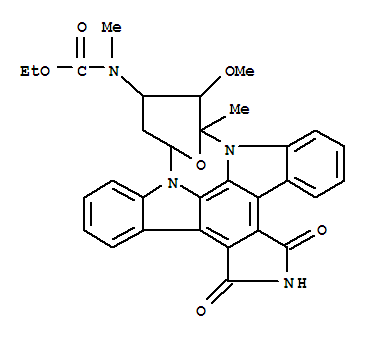 - Synonyms:Carbamicacid,(2,3,10,11,12,13-hexahydro-10-methoxy-9-methyl-1,3-dioxo-9,13-epoxy-1H,9H-diindolo[1,2,3-gh:3',2',1'-lm]pyrrolo[3,4-j][1,7]benzodiazonin-11-yl)methyl-,ethyl ester, [9S-(9a,10b,11b,13a)]-; 9,13-Epoxy-1H,9H-diindolo[1,2,3-gh:3',2',1'-lm]pyrrolo[3,4-j][1,7]benzodiazonine,carbamic acid deriv.; N-(Ethoxycarbonyl)-7-oxostaurosporine; NA 382