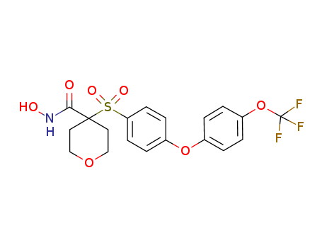 - Synonyms:N-hydroxy-4-{[4-(4-[trifluoromethoxy]phenoxy)phenyl]sulfonyl}tetrahydro-2H-pyran-4-carboxamide