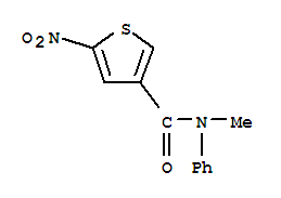 - Synonyms:N-Methyl-5-nitro-N-phenyl-3-thiophenecarboxamide;3-Thiophenecarboxamide,N-methyl-5-nitro-N-phenyl;N-Phenyl-5-nitro-N-methyl-3-thiophenecarboxamide;N-Methyl-5-nitro-3-thiophenecarboxanilide;