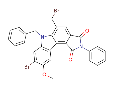 - Synonyms:N-phenyl-9-benzyl-7-bromo-1-bromomethyl-6-methoxycarbazole-3,4-dicarboximide