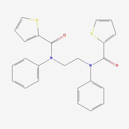 - Synonyms:314285-25-1;N,N'-1,2-ethanediylbis(N-phenyl-2-thiophenecarboxamide);N-phenyl-N-[2-[N-(thiophene-2-carbonyl)anilino]ethyl]thiophene-2-carboxamide;N-phenyl-N-{2-[N-phenyl-1-(thiophen-2-yl)formamido]ethyl}thiophene-2-carboxamide;N,N'-1,2-Ethanediylbis[N-phenyl-2-thiophenecarboxamide];CBMicro_042933;DTXSID601204205;N,N'-(ethane-1,2-diyl)bis(N-phenylthiophene-2-carboxamide);STK072528;AKOS000486100;BIM-0042872.P001;EU-0044982;AN-329/13318008;SR-01000493568;SR-01000493568-1;F1443-5462;N,N'-ethane-1,2-diylbis(N-phenylthiophene-2-carboxamide);N-phenyl-N-{2-[(2-thienylcarbonyl)anilino]ethyl}-2-thiophenecarboxamide;N-phenyl-N-{2-[phenyl(thien-2-ylcarbonyl)amino]ethyl}thiophene-2-carboxamide