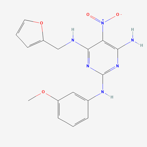 - Name: N4-(2-furanylmethyl)-N2-(3-methoxyphenyl)-5-nitropyrimidine-2,4,6-triamine