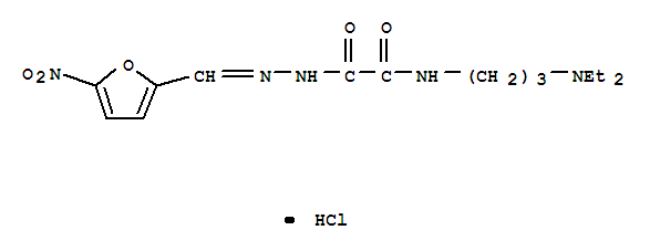 - Synonyms:Aceticacid, [[3-(diethylamino)propyl]amino]oxo-,[(5-nitro-2-furanyl)methylene]hydrazide, monohydrochloride (9CI); NF 167