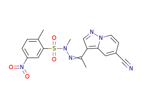 - Synonyms:N'-(1-(5-cyanopyrazolo[1,5-a]pyridin-3-yl)ethylidene)-N,2-dimethyl-5-nitrobenzenesulfonohydrazide