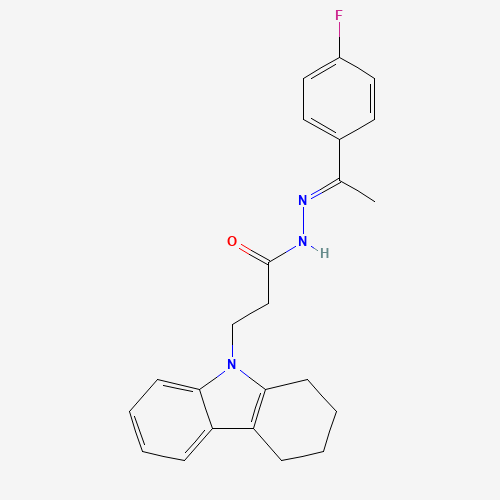 - Synonyms:STL000682;AKOS002308650;N'-(1-(4-F-PH)ETHYLIDENE)3-(1,2,3,4-TETRAHYDRO-9H-CARBAZOL-9-YL)PROPANOHYDRAZIDE;N'-[(1E)-1-(4-fluorophenyl)ethylidene]-3-(1,2,3,4-tetrahydro-9H-carbazol-9-yl)propanehydrazide