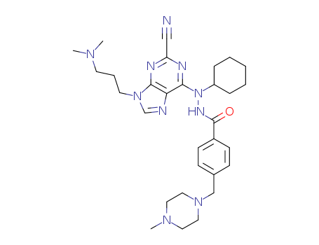 - Synonyms:N'-{2-cyano-9-[3-(dimethylamino)propyl]-9H-purin-6-yl}-N'-cyclohexyl-4-[(4-methyl-1-piperazinyl)methyl]benzohydrazide