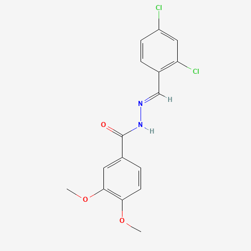- Synonyms:CHEMBL5190186;SCHEMBL16077679;AKOS003438492;N'-(2,4-Dichlorobenzylidene)-3,4-dimethoxybenzohydrazide;N'~1~-[(2,4-DICHLOROPHENYL)METHYLENE]-3,4-DIMETHOXYBENZOHYDRAZIDE