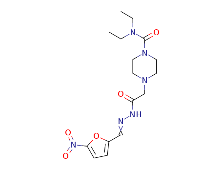 - Synonyms:1-Piperazineaceticacid, 4-(diethylcarbamoyl)-, (5-nitrofurfurylidene)hydrazide (8CI);1-Piperazineacetic acid, 4-[(diethylamino)carbonyl]-,[(5-nitro-2-furanyl)methylene]hydrazide (9CI); 5-Nitro-2-furaldehydeN'-diethylcarbamoyl piperazinoacethydrazone