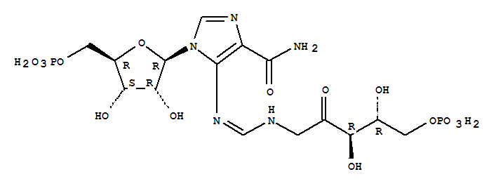 - Synonyms:Imidazole-4-carboxamide,5-[[(D-erythro-pentulosylamino)methylene]amino]-1-b-D-ribofuranosyl-, 5,5'-diphosphate (7CI);N-(5'-Phospho-D-ribulosylformimino)-5-amino-1-(5''-phosphoribosyl)-4-imidazolylcarboxamide