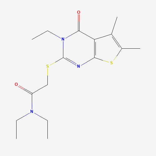 - Name: N,N-Diethyl-2-((3-ethyl-5,6-dimethyl-4-oxo-3,4-dihydrothieno[2,3-d]pyrimidin-2-yl)thio)acetamide