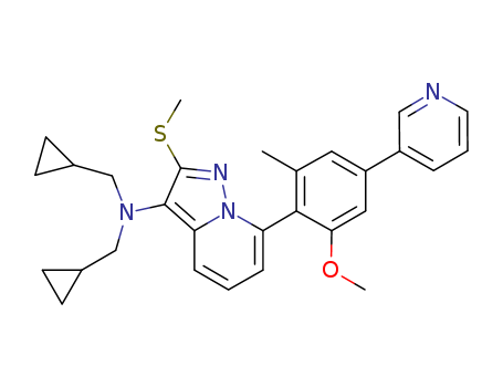 N,N-dicyclopropylmethyl-N-[7-[2-methoxy-6-methyl-4-(3-pyridyl)phenyl]-2-(methylsulfanyl)pyrazolo[1,5-a]pyridin-3-yl]amine(475173-58-1)