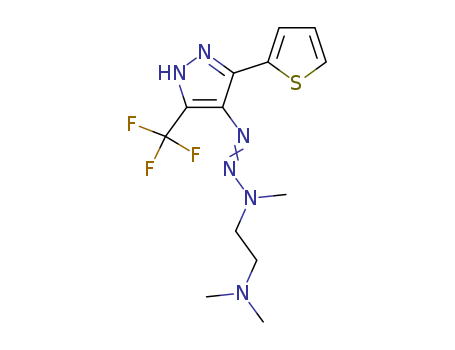 - Synonyms:Pyrazole,4-[3-[2-(dimethylamino)ethyl]-3-methyl-1-triazeno]-3-(2-thienyl)-5-(trifluoromethyl)-(8CI); NSC 131246