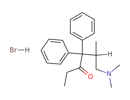 - Synonyms:3-HEXANONE,6-DIMETHYLAMINO-4,4-DIPHENYL-5-METHYL-,HYDROBROMIDE;Isoamidone hydrobromide;N,N,2-trimethyl-4-oxo-3,3-diphenylhexan-1-aminium bromide;