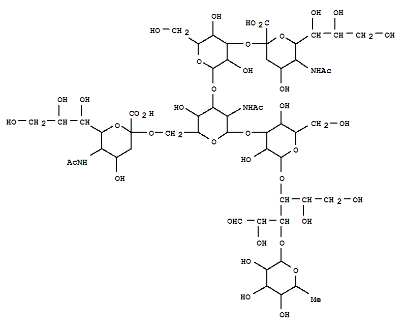 - 127783-55-5/(2S,4S,5R,6R)-5-acetamido-2-[(2R,3R,4S,5S,6R)-2-[(2R,3S,4R,5R,6S)-5-acetamido-2-[[(2R,4S,5R,6R)-5-acetamido-2-carboxy-4-hydroxy-6-[(1R,2R)-1,2,3-trihydroxypropyl]oxan-2-yl]oxymethyl]-6-[(2R,3S,5R,6S)-3,5-dihydroxy-2-(hydroxymethyl)-6-[(2R,3R,4R,5R)-1,2,4,5-tetrahydroxy-6-oxohexan-3-yl]oxyoxan-4-yl]oxy-3-[(2S,4R,5S,6S)-3,4,5-trihydroxy-6-methyloxan-2-yl]oxyoxan-4-yl]oxy-3,5-dihydroxy-6-(hydroxymethyl)oxan-4-yl]oxy-4-hydroxy-6-[(1R,2R)-1,2,3-trihydroxypropyl]oxane-2-carboxylic acid