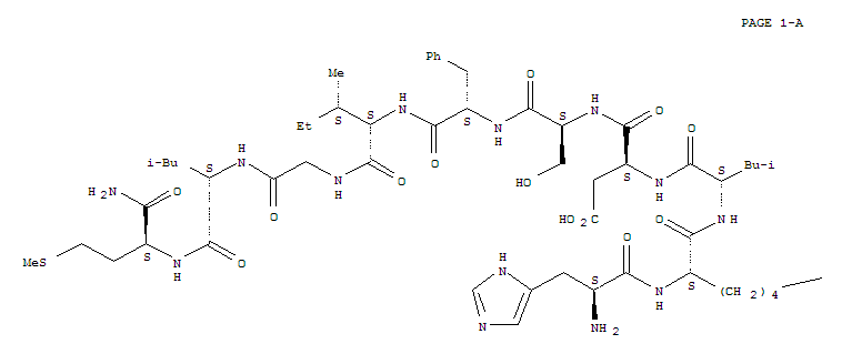 - Synonyms:Eledoisin,1-de(5-oxo-L-proline)-2-L-histidine-3-L-lysine-4-L-leucine-6-L-serine-;L-Methioninamide, L-histidyl-L-lysyl-L-leucyl-L-a-aspartyl-L-seryl-L-phenylalanyl-L-isoleucylglycyl-L-leucyl-;[Leu3,Ile7]Neurokinin A