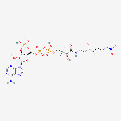 - Synonyms:NITROMETHYLDETHIA COENZYME A;NMX;DTXSID001099422;DB04230;157825-89-3;Adenosine 5'-(trihydrogen diphosphate), 3'-(dihydrogen phosphate), P'-[(3R)-3-hydroxy-2,2-dimethyl-4-[[3-[(3-nitropropyl)amino]-3-oxopropyl]amino]-4-oxobutyl] ester