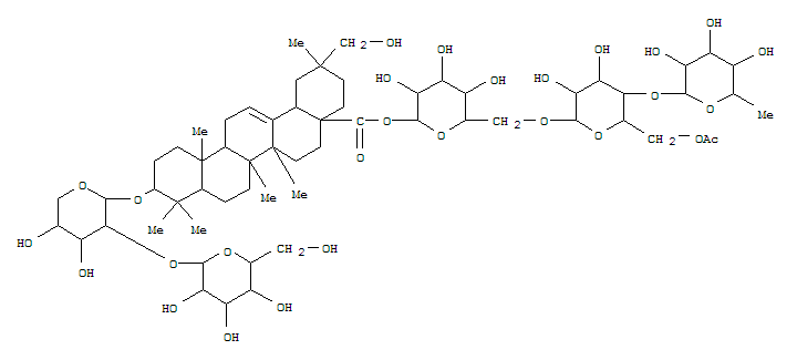 Olean-12-en-28-oicacid, 3-[(2-O-b-D-glucopyranosyl-a-L-arabinopyranosyl)oxy]-29-hydroxy-,O-6-deoxy-a-L-mannopyranosyl-(1®4)-O-6-O-acetyl-b-D-glucopyranosyl-(1®6)-b-D-glucopyranosyl ester, (3b,20a)- (9CI)