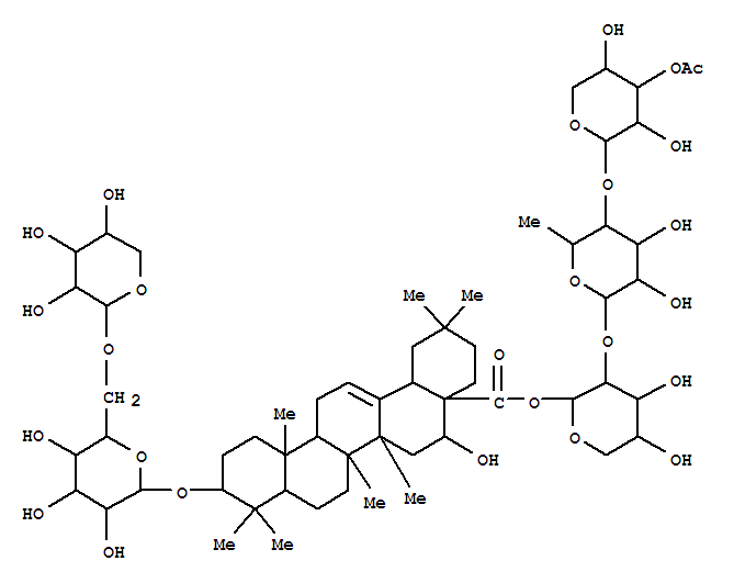 Olean-12-en-28-oicacid, 3-[(6-O-a-L-arabinopyranosyl-b-D-glucopyranosyl)oxy]-16-hydroxy-,O-3-O-acetyl-b-D-xylopyranosyl-(1®4)-O-6-deoxy-a-L-mannopyranosyl-(1®2)-a-L-arabinopyranosyl ester, (3b,16a)- (9CI)(160472-88-8)