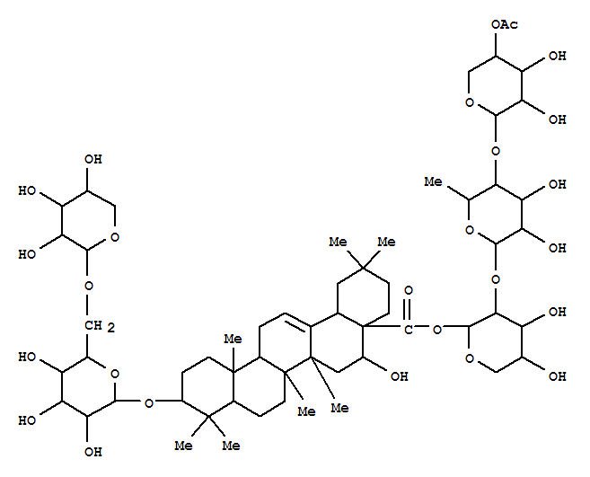 Olean-12-en-28-oicacid, 3-[(6-O-a-L-arabinopyranosyl-b-D-glucopyranosyl)oxy]-16-hydroxy-,O-4-O-acetyl-b-D-xylopyranosyl-(1®4)-O-6-deoxy-a-L-mannopyranosyl-(1®2)-a-L-arabinopyranosyl ester, (3b,16a)- (9CI)(160472-89-9)