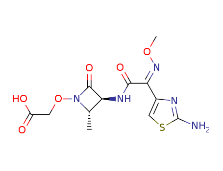 - Synonyms:Aceticacid, [[(2S,3S)-3-[[(2Z)-(2-amino-4-thiazolyl)(methoxyimino)acetyl]amino]-2-methyl-4-oxo-1-azetidinyl]oxy]-(9CI); Acetic acid,[[3-[[(2-amino-4-thiazolyl)(methoxyimino)acetyl]amino]-2-methyl-4-oxo-1-azetidinyl]oxy]-,[2S-[2a,3b(Z)]]-; Oximonam