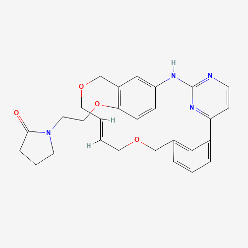 - Synonyms:Pacritinib metabolite M1;9J4QL2SP4U;UNII-9J4QL2SP4U;1312603-77-2;2-Pyrrolidinone, 1-(2-(14,19-dioxa-5,7,27-triazatetracyclo(19.3.1.12,6.18,12)heptacosa-1(25),2,4,6(27),8,10,12(26),16,21,23-decaen-11-yloxy)ethyl)-, (16E)-;CHEMBL2181332;2-Pyrrolidinone, 1-[2-[14,19-dioxa-5,7,27-triazatetracyclo[19.3.1.12,6.18,12]heptacosa-1(25),2,4,6(27),8,10,12(26),16,21,23-decaen-11-yloxy]ethyl]-, (16E)-;BDBM50400310