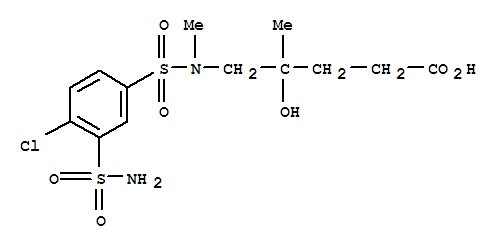 - Synonyms:Valericacid, 5-(4-chloro-N-methyl-3-sulfamoylbenzenesulfonamido)-4-hydroxy-4-methyl-(8CI);4-Chloro-N1-methyl-N1-(4-carboxy-2-hydroxy-2-methylbutyl)-m-benzenedisulfonamide