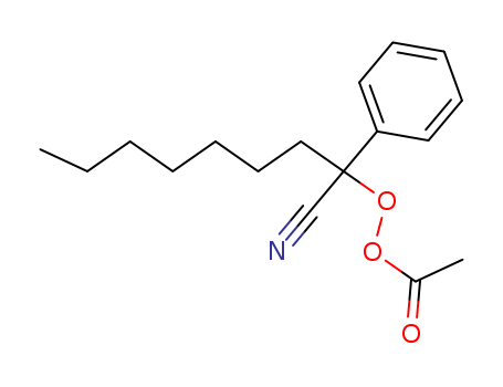 - Synonyms:1-Cyano-1-phenyloctyl ethaneperoxoate;2-Peracetoxy-2-phenylnonannitril;Ethaneperoxoic acid,1-cyano-1-phenyloctyl ester;