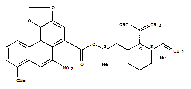 - Name: Phenanthro[4,3-d]-1,3-dioxole-5-carboxylicacid, 8-methoxy-6-nitro-,(1S)-2-[(5R,6S)-5-ethenyl-6-(1-formylethenyl)-5-methyl-1-cyclohexen-1-yl]-1-methylethylester