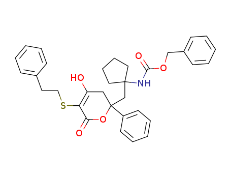 Phenylmethyl [1-[[3,6-dihydro-4-hydroxy-6-oxo-2-phenyl-5-[(2-phenylethyl)thio]-2H-pyran-2-yl]methyl]cyclopentyl]carbamate(170785-83-8)