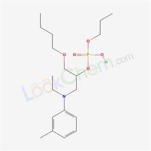 - Synonyms:PHOSPHORIC ACID MONO[2-BUTOXY-1-[[ETHYL(3-METHYLPHENYL)AMINO]METHYL]ETHYL] MONOPROPYL ESTER;1-butoxy-3-[ethyl(3-methylphenyl)amino]propan-2-yl propyl hydrogen phosphate;
