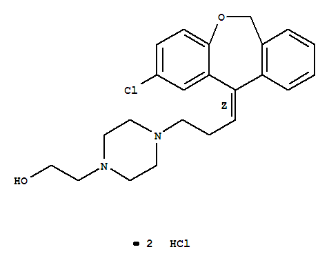 - Synonyms:1-Piperazineethanol,4-[(3Z)-3-(2-chlorodibenz[b,e]oxepin-11(6H)-ylidene)propyl]-, dihydrochloride(9CI); 1-Piperazineethanol,4-[3-(2-chlorodibenz[b,e]oxepin-11(6H)-ylidene)propyl]-, dihydrochloride, (Z)-(8CI); Dibenz[b,e]oxepin, 1-piperazineethanol deriv.; P 5227; Pinoxepinhydrochloride; cis-4-[3-(2-Chlorodibenz[b,e]oxepin-11(6H)-ylidene)propyl]-1-piperazineethanoldihydrochloride