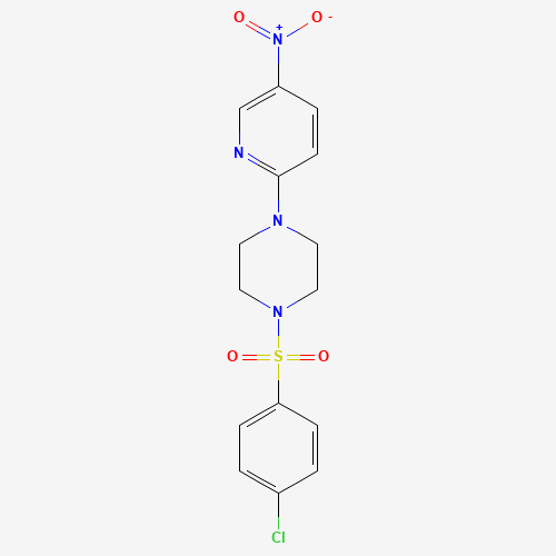 - Synonyms:Maybridge1_001474;Oprea1_212233;HMS545K22;DTXSID901167498;AKOS006514426;Piperazine, 1-[(4-chlorophenyl)sulfonyl]-4-(5-nitro-2-pyridinyl)-;219689-75-5