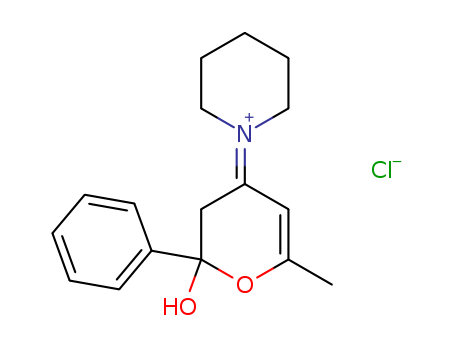 - Name: Piperidinium, 1-(2,3-dihydro-2-hydroxy-6-methyl-2-phenyl-4H-pyran-4-ylidene)-, chloride