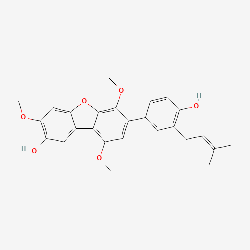 - Synonyms:Prenylcandidusin C;CHEBI:67532;CHEMBL1795463;DTXSID301315811;Q27136001;7-[4-hydroxy-3-(3-methylbut-2-en-1-yl)phenyl]-3,6,9-trimethoxydibenzo[b,d]furan-2-ol;1297472-20-8