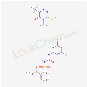 ethyl 2-{[(4-chloro-6-methoxypyrimidin-2-yl)carbamoyl]sulfamoyl}benzoate - 4-amino-6-tert-butyl-3-(methylsulfanyl)-1,2,4-triazin-5(4H)-one (1:1)(110000-06-1)