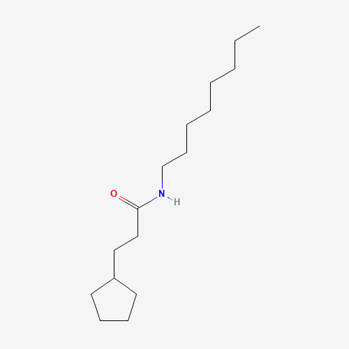 - Synonyms:N-Octylcyclopentanepropanamide;ZFVNUJJUYXHVNH-UHFFFAOYSA-N;DTXSID701306458;Propanamide, 3-cyclopentyl-N-octyl-;AKOS003861123;544431-12-1