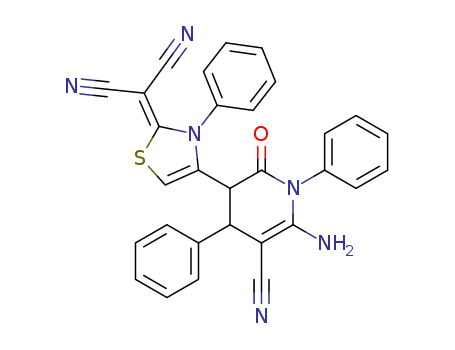 - Name: Propanedinitrile, [4-(6-amino-5-cyano-1,2,3,4-tetrahydro-2-oxo-1,4-diphenyl-3-pyridinyl)- 3-phenyl-2(3H)-thiazolylidene]-