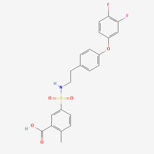 - Synonyms:PXK56F7P6Y;UNII-PXK56F7P6Y;PF-00807925;871687-93-3;5-(( (2-(4-(3 ,4-Difluorophenoxy)phenyl)ethyl) amino)sulfonyl)-2-methylbenzoic acid;SCHEMBL1601180;CHEMBL4785223