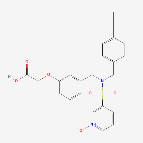 - Synonyms:Pyridine-N-oxide evatanepag;IS7VQ3339K;CP-533,536 metabolite M5;UNII-IS7VQ3339K;(3-(((4-tert-Butylbenzyl)(1-oxopyridin-3-ylsulfonyl)amino)methyl)phenoxy)acetic acid;2-(3-((((4-(1,1-Dimethylethyl)phenyl)methyl)((1-oxido-3-pyridinyl)sulfonyl)amino)methyl)phenoxy)acetic acid;574759-33-4;Acetic acid, 2-(3-((((4-(1,1-dimethylethyl)phenyl)methyl)((1-oxido-3-pyridinyl)sulfonyl)amino)methyl)phenoxy)-;SCHEMBL6281893