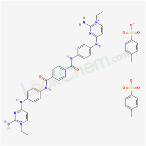 - Name: Pyrimidinium, 4, 4-[terephthaloylbis(imino-p-phenyleneimino)]bis-(2-amino-1-ethyl- , di-p-toluenesulfonate, hemihydrate