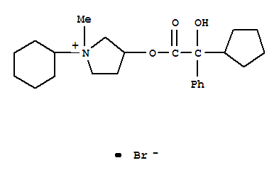 - Name: Pyrrolidinium,1-cyclohexyl-3-[(2-cyclopentyl-2-hydroxy-2-phenylacetyl)oxy]-1-methyl-, bromide(1:1)