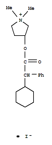 - Synonyms:1,1-Dimethylpyrrolidiniumiodide, a-phenylcyclohexaneacetate (6CI);Pyrrolidinium, 3-[(cyclohexylphenylacetyl)oxy]-1,1-dimethyl-, iodide (9CI)