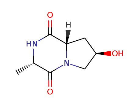 - Synonyms:Pyrrolo[1,2-a]pyrazine-1,4-dione, hexahydro-7-hydroxy-3-methyl-, (3S,7R,8aR)- (9CI);(3S,7R,8AR)-7-HYDROXY-3-METHYLHEXAHYDROPYRROLO[1,2-A]PYRAZINE-1,4-DIONE