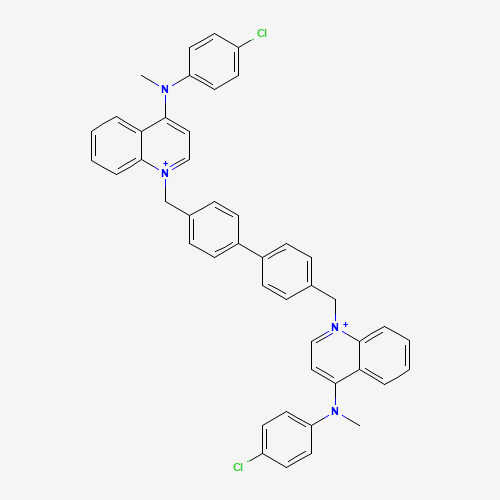 - Synonyms:RSM-932A cation;TCD-717 cation;PM765BVW4Z;UNII-PM765BVW4Z;TCD-717;850993-73-6;Quinolinium, 1,1'-((1,1'-biphenyl)-4,4'-diylbis(methylene))bis(4-((4-chlorophenyl)methylamino)-;CHEMBL192986;1,1'-[[1,1'-biphenyl]-4,4'-diylbis(methylene)]bis{4-[(4-chlorophenyl)(methyl)amino]quinolin-1-ium};CHEMBL1181829;SCHEMBL16441051;BDBM50166172;1,1'-(1,1'-Biphenyl-4,4'-diylbismethylene)bis[4-[methyl(4-chlorophenyl)amino]quinolinium];9X1