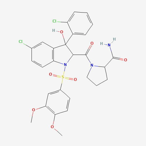 - Synonyms:Relcovaptan (SR-49059);SCHEMBL7850955;DTXSID40861399;L001471;1-[5-Chloro-3-(2-chlorophenyl)-1-(3,4-dimethoxybenzene-1-sulfonyl)-3-hydroxy-2,3-dihydro-1H-indole-2-carbonyl]pyrrolidine-2-carboxamide (non-preferred name);359761-91-4