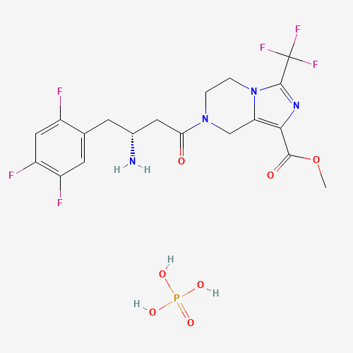 - Synonyms:Retagliptin Phosphate;1256756-88-3;Retagliptin (phosphate);24NZ3UE3DJ;methyl 7-[(3R)-3-amino-4-(2,4,5-trifluorophenyl)butanoyl]-3-(trifluoromethyl)-6,8-dihydro-5H-imidazo[1,5-a]pyrazine-1-carboxylate;phosphoric acid;Sp-2086(H3PO4);SP 2086;Imidazo(1,5-a)pyrazine-1-carboxylic acid, 7-((3R)-3-amino-1-oxo-4-(2,4,5-trifluorophenyl)butyl)-5,6,7,8-tetrahydro-3-(trifluoromethyl)-, methyl ester, phosphate (1:1);Imidazo[1,5-a]pyrazine-1-carboxylic acid, 7-[(3R)-3-amino-1-oxo-4-(2,4,5-trifluorophenyl)butyl]-5,6,7,8-tetrahydro-3-(trifluoromethyl)-, methyl ester, phosphate (1:1);UNII-24NZ3UE3DJ;SP-2086;SP2086;SFNHOWDAQMIJPX-HNCPQSOCSA-N;BCP23795;EX-A2814;AKOS040736617;AC-31593;HY-112668;CS-0059159