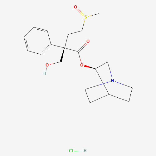- Synonyms:UNII-BJ9G601BQR;BJ9G601BQR;Revatropate hydrochloride;586346-96-5;Benzeneacetic acid, alpha-(hydroxymethyl)-alpha-(2-((R)-methylsulfinyl)ethyl)-, (3R)-1-azabicyclo(2.2.2)oct-3-yl ester, hydrochloride (1:1), (alphaS)-;Benzeneacetic acid, alpha-(hydroxymethyl)-alpha-(2-((R)-methylsulfinyl)ethyl)-, (3R)-1-azabicyclo(2.2.2)oct-3-yl ester, hydrochloride, (alphaS)-
