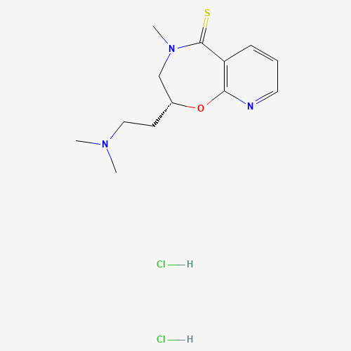 - Synonyms:Rocastine dihydrochloride, (R)-;61Q8Y3L270;UNII-61Q8Y3L270;104641-57-8;Pyrido(3,2-f)-1,4-oxazepine-5(2H)-thione, 2-(2-(dimethylamino)ethyl)-3,4-dihydro-4-methyl-, dihydrochloride, (R)-;(R)-rocastine dihydrochloride;SCHEMBL10887409;Q27263365