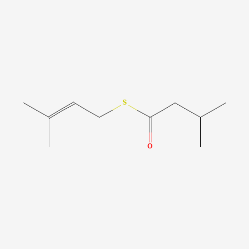 - Synonyms:S-PRENYL THIOISOPENTANOATE;75631-91-3;UNII-701V2T2HQ7;701V2T2HQ7;Butanethioic acid, 3-methyl-, S-(3-methyl-2-butenyl) ester;Butanethioic acid, 3-methyl-, S-(3-methyl-2-buten-1-yl) ester;PRENYL THIOISOVALERATE;FEMA NO. 4761;DTXSID60703702;S-(3-Methylbut-2-en-1-yl) 3-methylbutanethioate;S-3-METHYLBUT-2-ENYL 3-METHYLBUTANETHIOATE;Q27265812;3-Methylbutanethioic acid S-(3-methyl-2-butenyl) ester