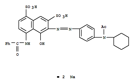 - Synonyms:1,7-Naphthalenedisulfonicacid, 4-benzamido-6-[[p-(N-cyclohexylacetamido)phenyl]azo]-5-hydroxy-, disodiumsalt (8CI); 1,7-Naphthalenedisulfonic acid,6-[[4-(acetylcyclohexylamino)phenyl]azo]-4-(benzoylamino)-5-hydroxy-, disodiumsalt (9CI); C.I. 17990; C.I. Acid Red 157; Supranol Brilliant Red G; SupranolBrilliant Red GD; Telon Fast Red EG